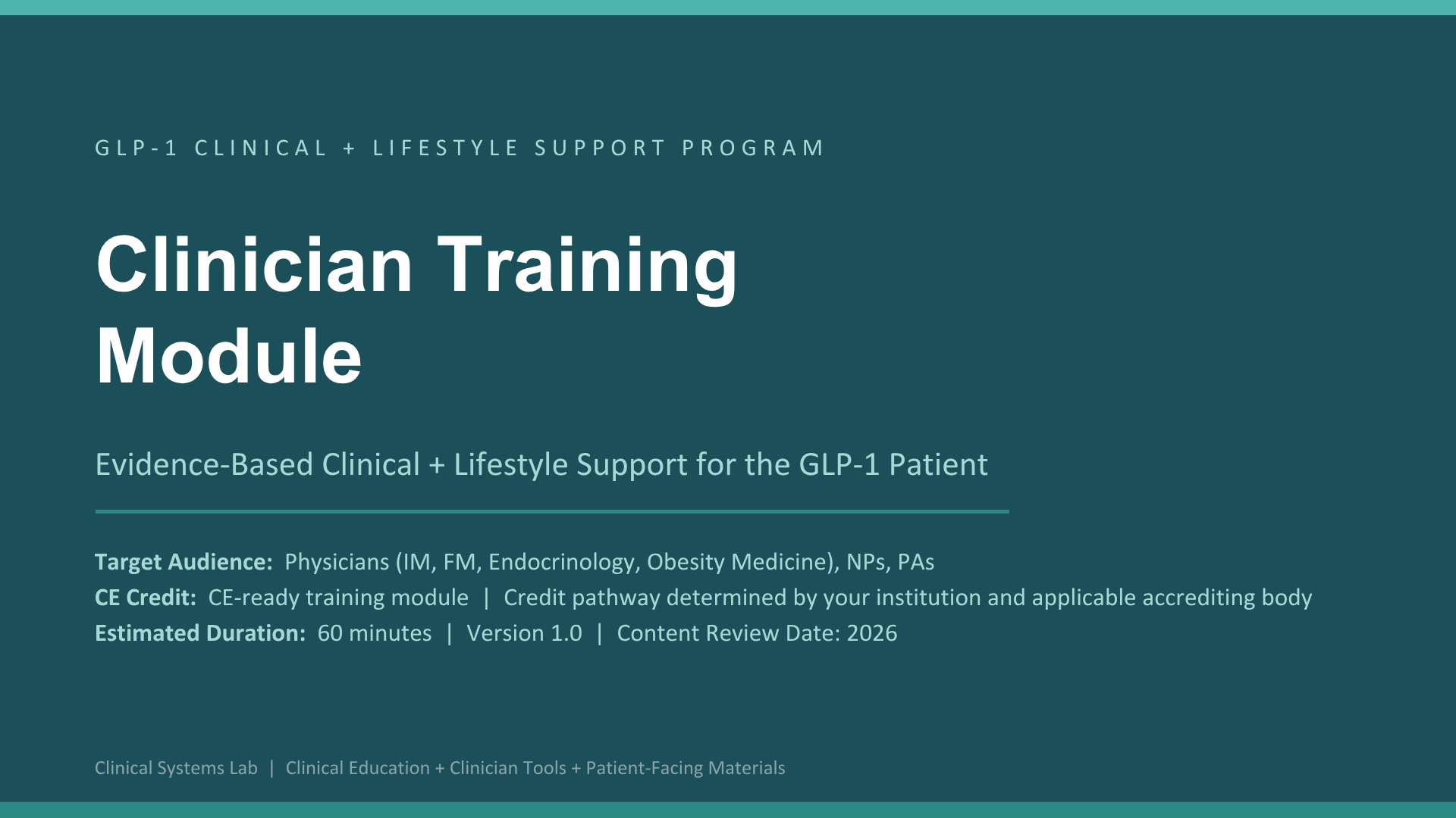 A multi-part education and support program designed to improve consistency across guidance, patient support, and next-step decision-making.