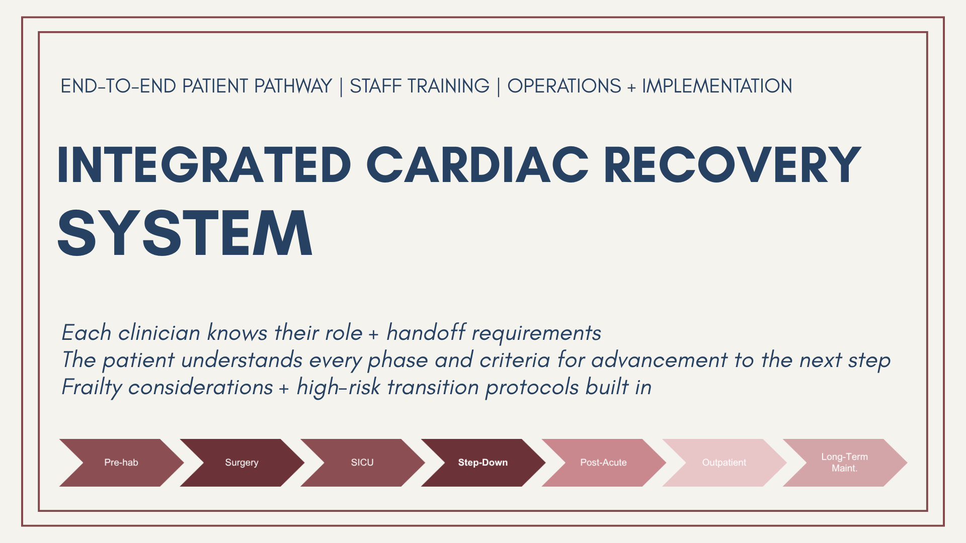 A broader continuity-focused education and support program designed to strengthen coordination, transitions, and implementation across recovery phases.